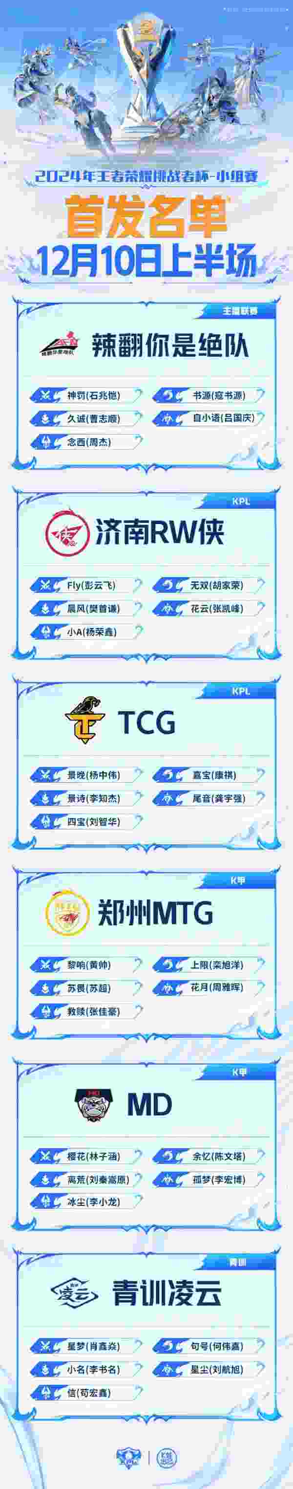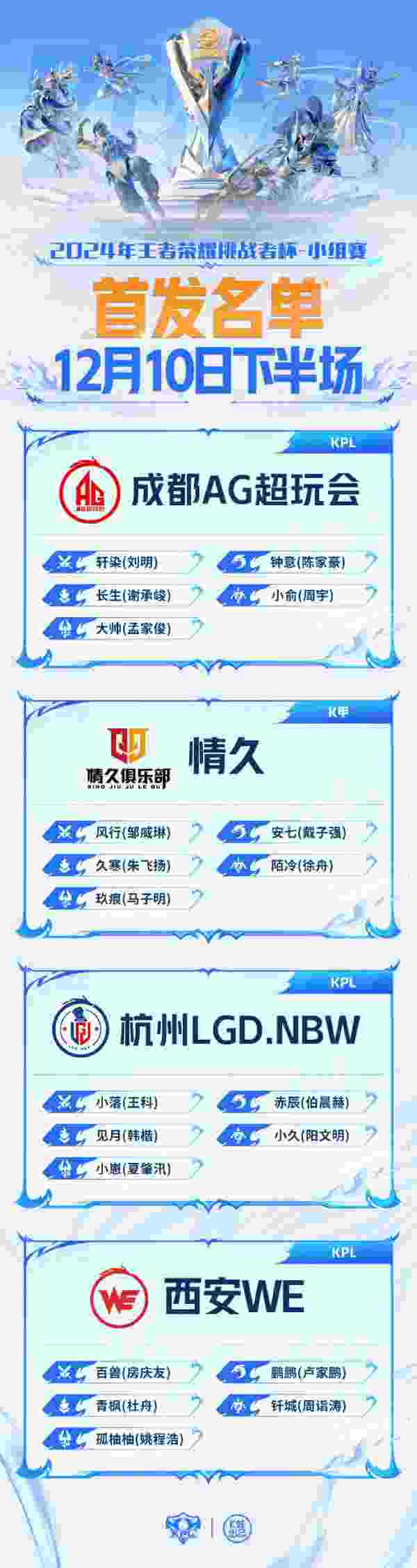 2024年王者荣耀挑战者杯 小组赛W1D4【首发名单】送达 !