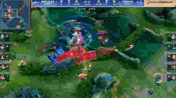 双方对抗路2打2,久诚沈梦溪追击拿到马超一血,诺言老夫子也被夏侯惇击杀