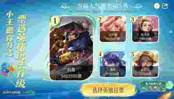 排在刘备之后的,分别是铠、赵云、梦奇、夏侯惇、娜可露露、雅典娜、阿轲、孙悟空和盘古。