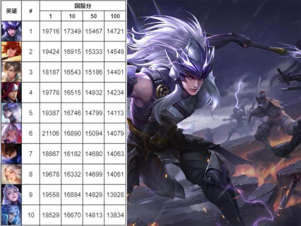 因为国一平均战力达到了21106分,排名第二的韩信也只是接近两万分,这直接拉开第二名一千三百多分,就问你离不离谱。