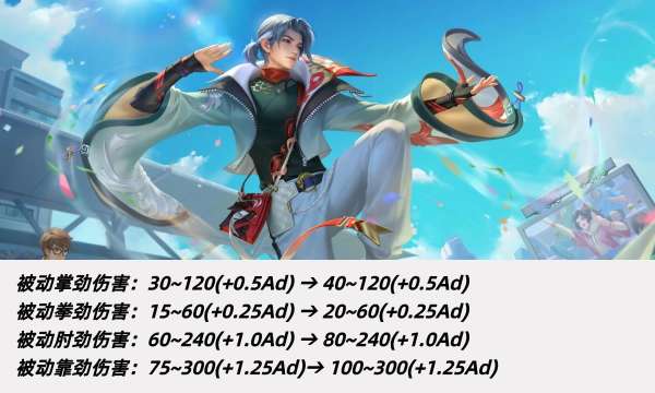 二/三技能改为额外AD加成,满级六神装采用这套出装进行对比,二技能上调35点伤害,三技能上调53点伤害*4段。