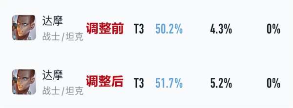 1.9日版本更新:达摩二技能上调了20-40点回血,二技能20拳打满提升了400-800点回血,调整后巅峰赛胜率上涨1.5%。