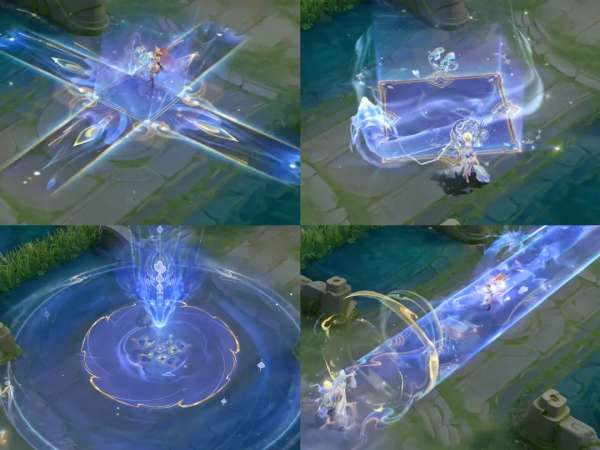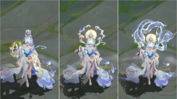 技能特效以蓝白色为主色调,融入了灵蛇法相、星河景象、水涡纹和蛇纹等元素。