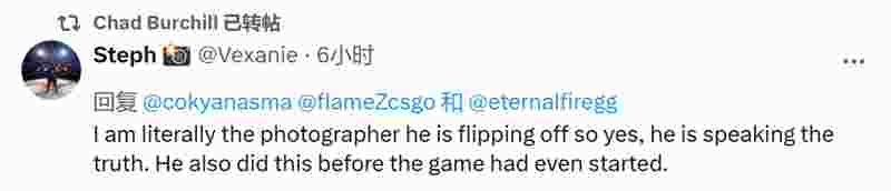 摄影师本人也现身说法,表示确实是flameZ和他开玩笑。flameZ在赛前就对他这么做了。