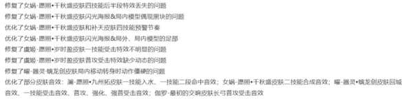 在2.20版本更新中,策划还大大小小的修复了20个Bug,其中,大部分都跟新皮肤相关。