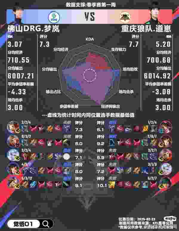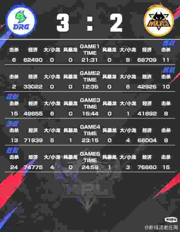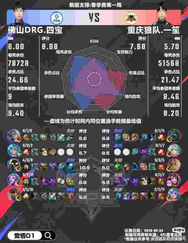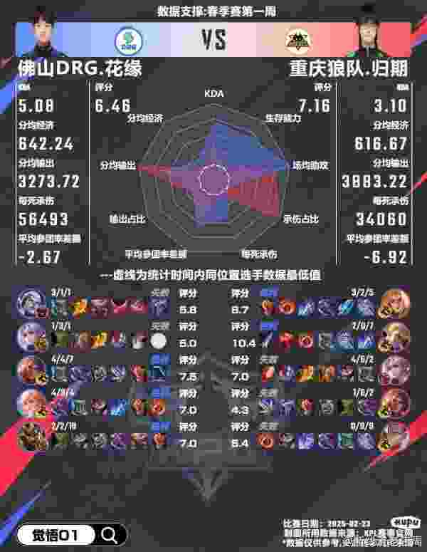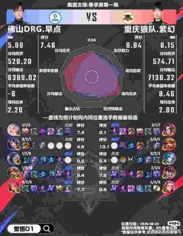 DRG战胜狼队双方队员雷达图出炉,谁是关键胜负手?