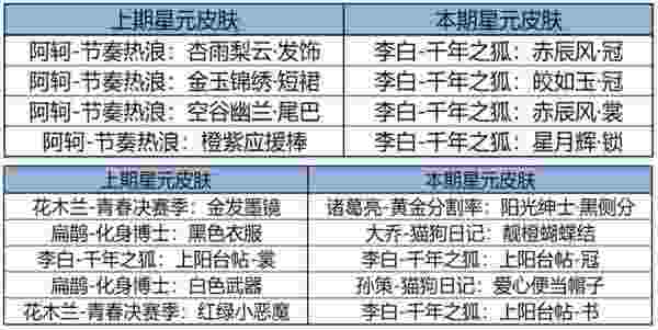 许愿望在这次更新中也会更新,奖池中阿轲节奏热浪的星元皮肤将替换为李白千年之狐的,累计兑换商店的花木兰青春决赛季、扁鹊化身博士、李白千年之狐的部件星元,更换为诸葛亮黄金分割率、大乔/孙策猫狗日记、李白千年之狐的部件,都是一些普通的星元,有需求的可以去兑换。