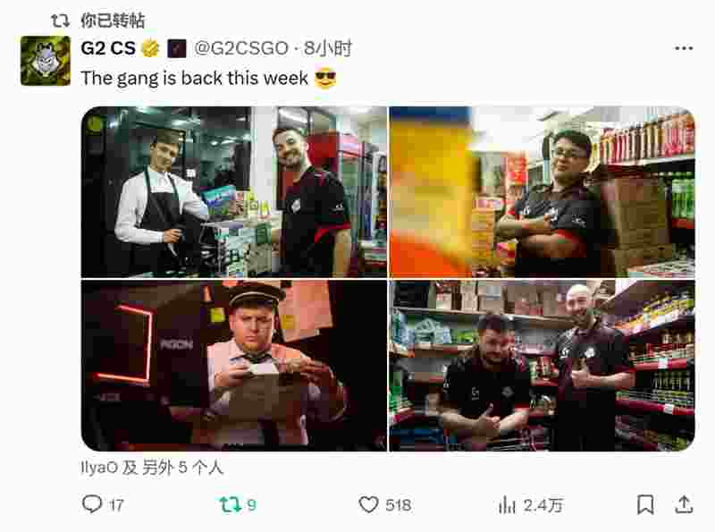 昨晚G2战队在社交平台上发布了一组队内选手的新写真,照片中m0NESY和HeavyGod都穿上了不同的服饰。m0NESY的收银员装扮让人眼前一亮。
