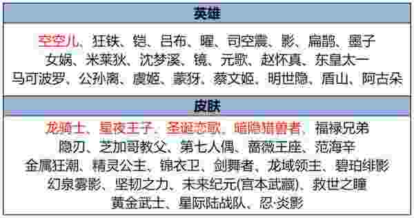 最后就是没有在最新公告中提及的钟馗S39赛季皮肤虚灵犬护,元流之子完成版本更新的晦冥之月,回忆礼册免费奖池中的扁鹊灵蛊蚀心,惊喜折扣的狂铁龙之律动、赵云百木心枪、周瑜雪夜绮愿,以及战令返场皮肤,雅典娜单词大作战、蒙犽狂想玩偶喵、李元芳九夏金橙,杨戬潮玩骑兵、扁鹊奇幻香踪、貂蝉流云霜糖、李元芳/鲁班七号蔬乡物语、鲁班七号瑰色时光。