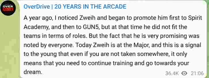 爆料人OverDrive在社交频道中分享了他对Nemiga战队步枪手zweih潜力的看法。