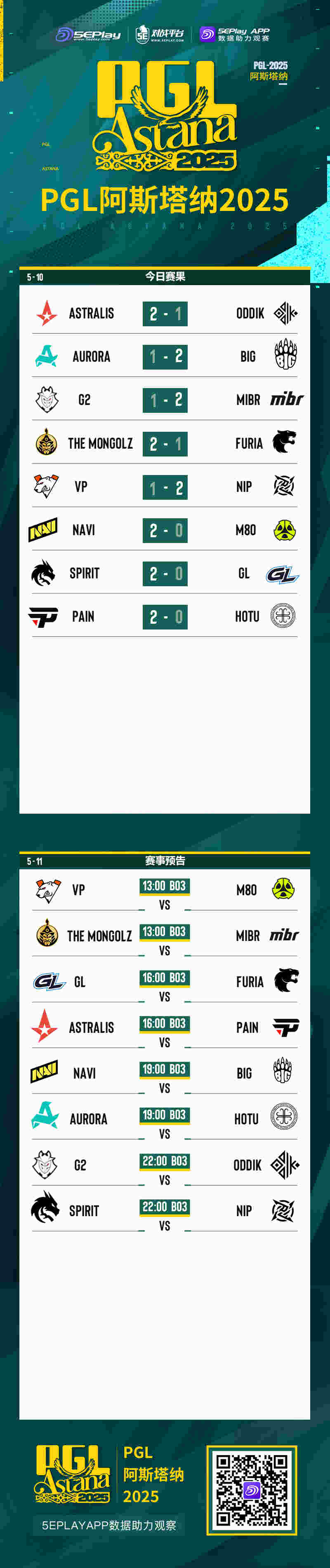 明天NAVI将迎战BIG、A队将对阵paiN,晚些还有G2、Spirit的比赛,敬请期待。