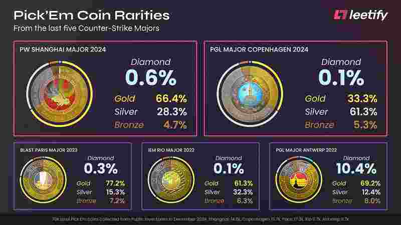 而根据数据统计网站leetify统计的结果,以下为历届Major钻石币持有率: