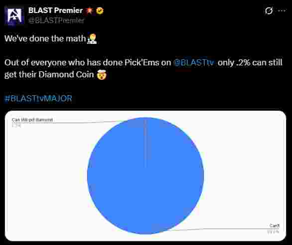 “我们已经计算过了,在所有参与过BLAST.tv Pick'Ems的用户中,只有0.2%的用户还能获得他们的钻石币。”
