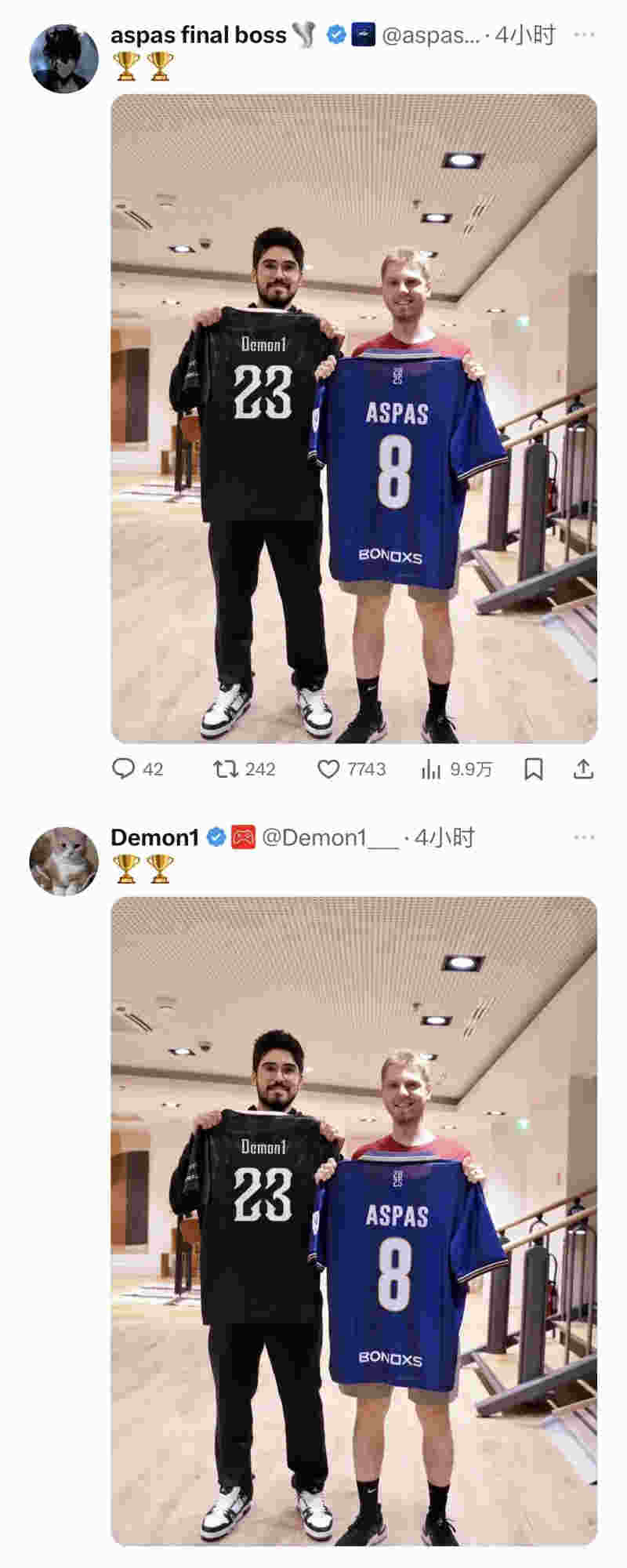 Max Mazanov | Demon1先后晒出两人交换队服的合照