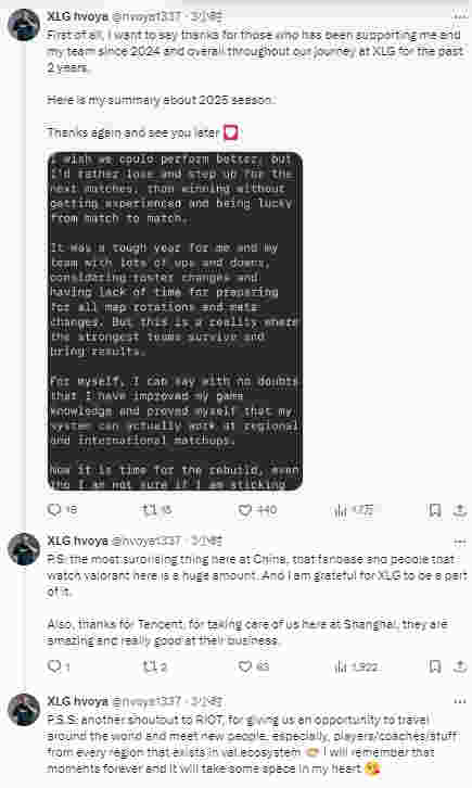 以下是我对2025赛季的总结。中国的无畏契约粉丝群体和观众非常庞大,很感谢XLG能是其中的一份子。