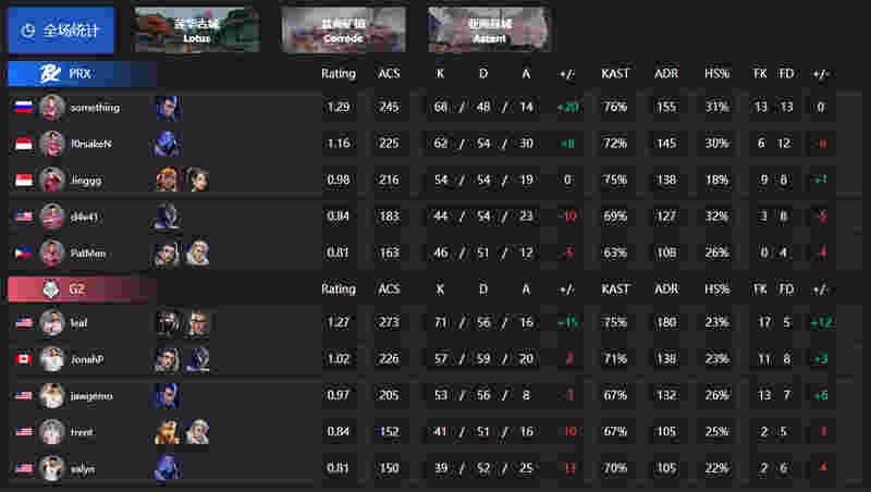 G2 Esports鏖战三图,最终凭借更多人的枪法发挥,PRX以2-1的比分击败G2,晋级胜者组半决赛。