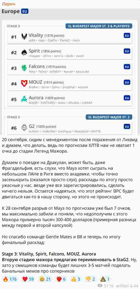我们当时考虑过参加Draculand赛事,甚至还想过去Fragadelphia。有传言说MOUZ为了稳拿晋级名额,想放弃青训赛事,转而参加里加的一场小型线下赛(后来证实这只是谣言)。最终,我们的处境变得极其糟糕,所有赛事的报名都已截止,我们什么也做不了,只能寄希望于VRS排名能朝着对我们有利的方向变动,但排名始终没有起色。