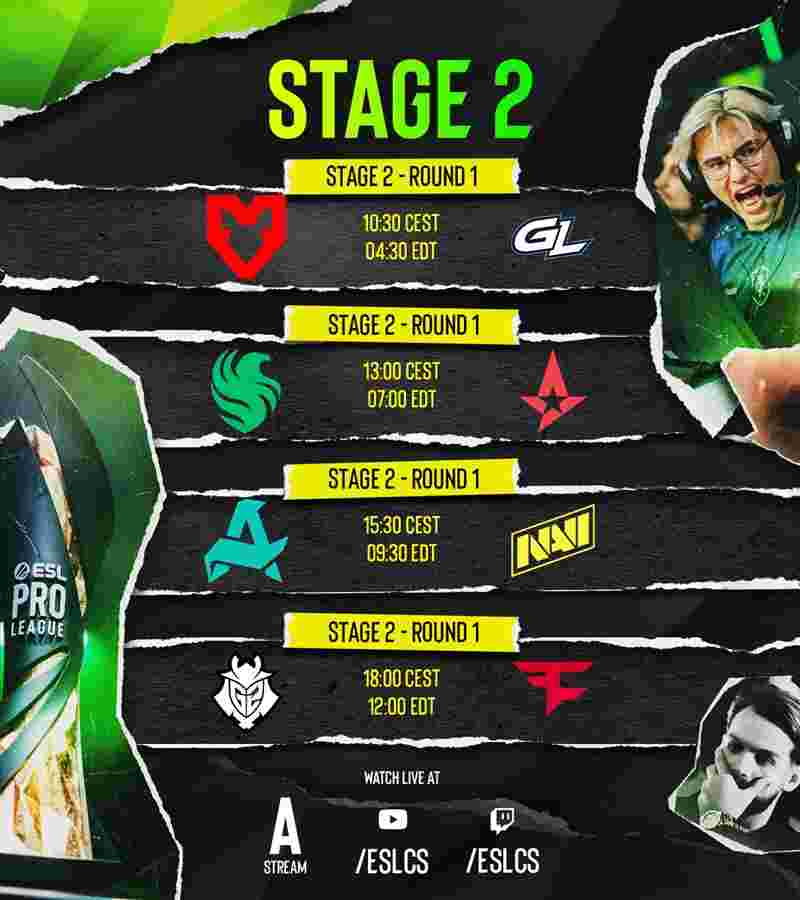 ESL已公布S22第二阶段的首轮对阵,该阶段赛事将于10月4日拉开帷幕。