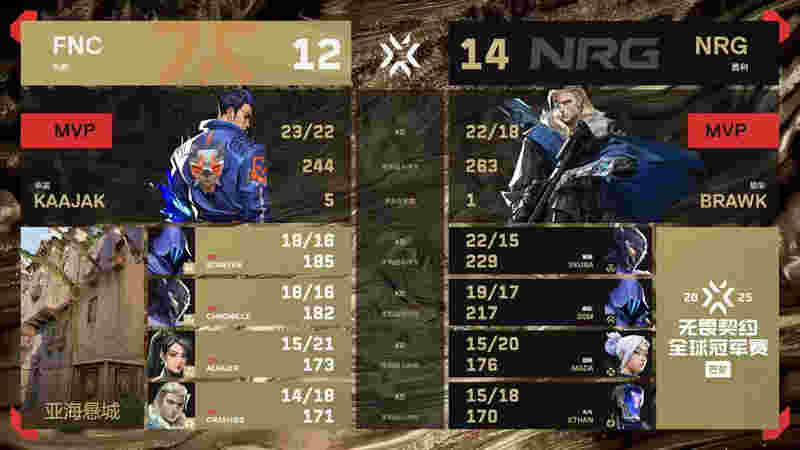 2025无畏契约巴黎全球冠军赛,胜者组决赛,NRG直落两盘击败