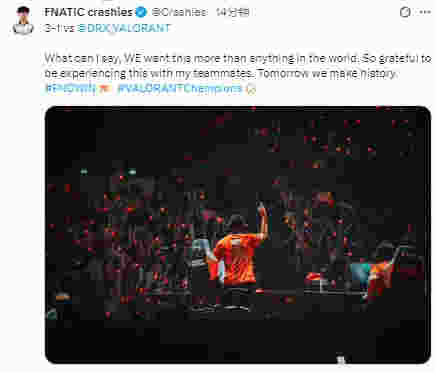 Austin Roberts | crashies发文:怎么说呢,我们对这一刻的渴望,超越世间万物。很感激能和队友们一起经历这一切,我们会创造历史。