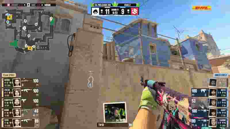 第二张地图的进攻阶段出现了反常情况:Spirit完全将进攻主动权让给对手,全程毫无亮眼表现,无论枪法还是运气都处于下风。后续的防守阶段甚至没多少发挥时间,仅通过几个回合就能看出,教练给tN1R的指令是驻守铁板。考虑到教练hally向来擅长这张地图,且Spirit此前在该图表现不俗,这一安排着实令人意外。是教练决定不启用既定战术,还是低估了对手实力?事实上,鉴于这张图并非决胜局,具体原因已无关紧要。