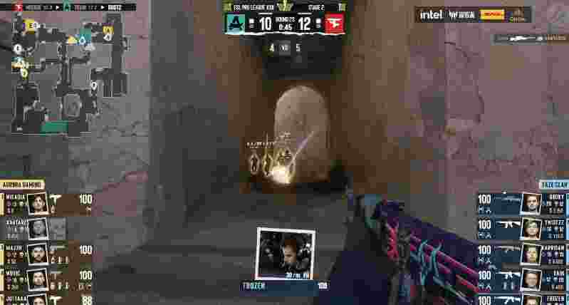 上半场的FaZe先作防守方开局,手枪局双方在内场交火互换人头,随后Aurora选择最后三十秒仔爆内场,但FaZe众人手感火热,寒王拿下双杀为FaZe拿下手枪局。