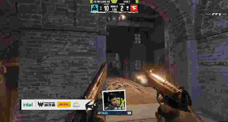 上半场的FaZe先作进攻方开局,FaZe开局选择快速进B但是过点直接被jottAAA连点两个爆头,随后大表哥选择转A也没能成功,Aurora拿下手枪局。