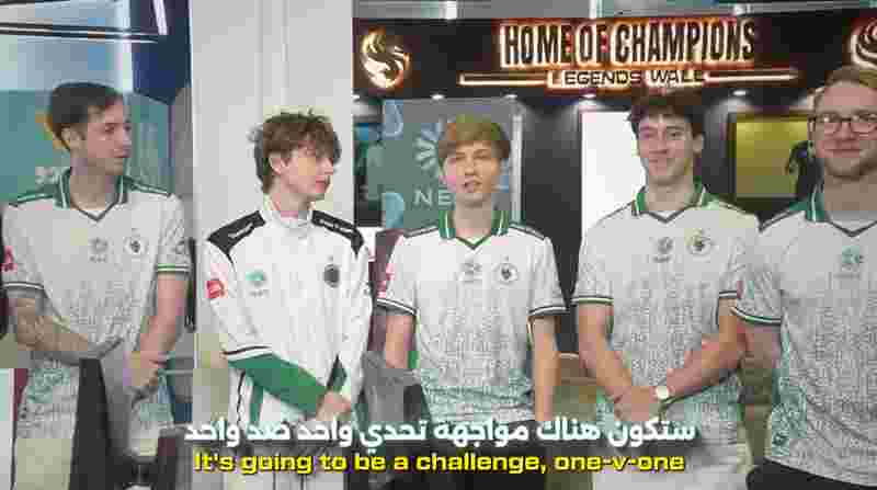 Falcons战队狙击手m0NESY发起了一场特别挑战:1v1模式,与战队所有成员及来自沙特阿拉伯的俱乐部其他工作人员展开对决。