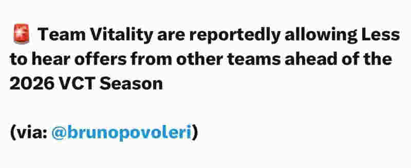 据外媒爆料,Team Vitality已允许旗下选手