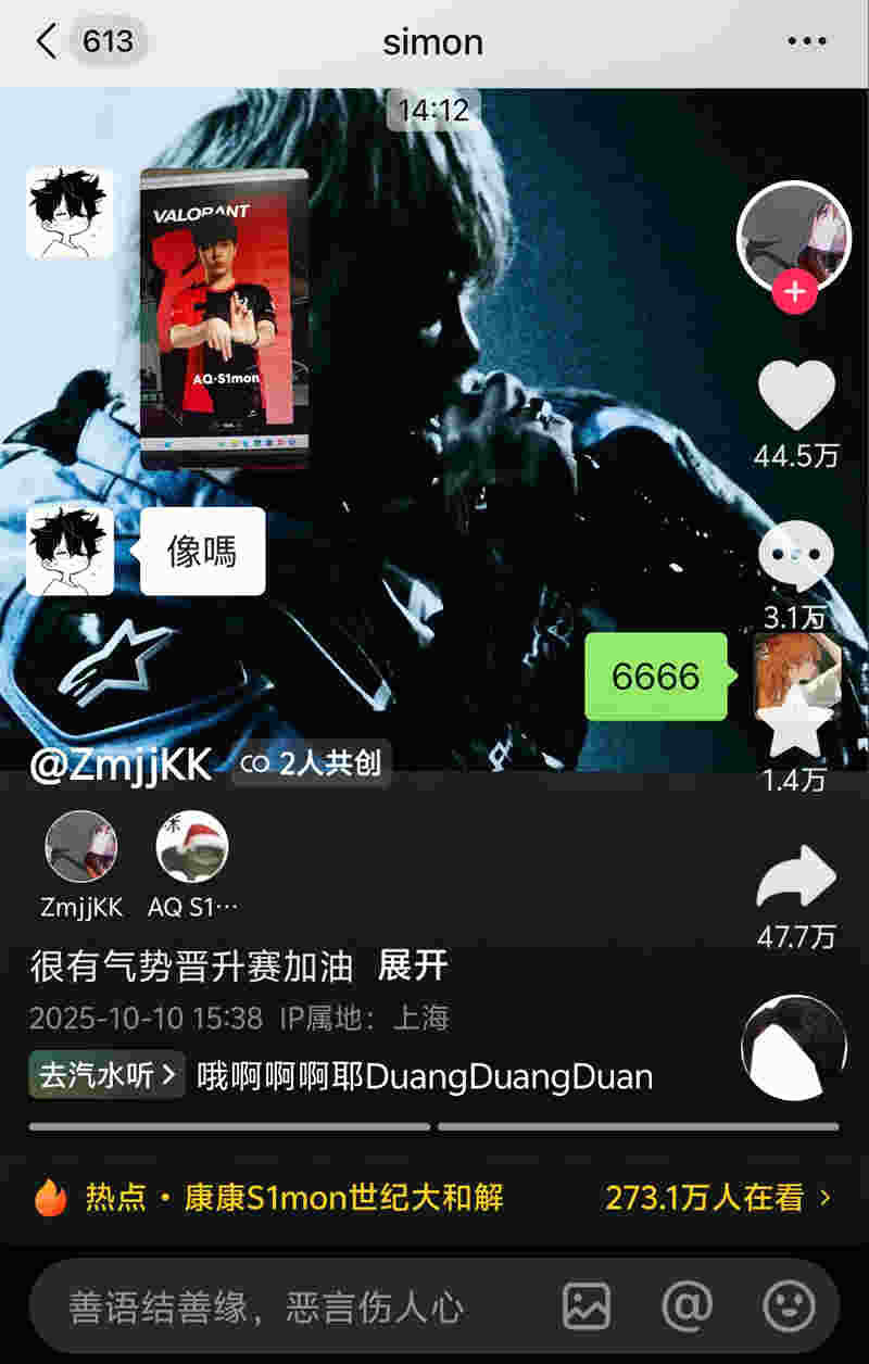 在早些时候,2025 VCT CN 晋升赛的赛前互动的真心话大冒险环节,S1Mon被问到“有什么事情是自己非常想做的”,S1Mon表示自己的目标是“对上EDward Gaming然后赢他们”。