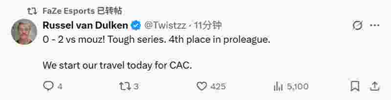 Twistzz:0-2 MOUZ,艰难的BO3,EPL第四名。