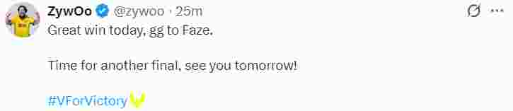 ZywOo:今天赢得漂亮,gg FaZe。又一场决赛将至,明天见!