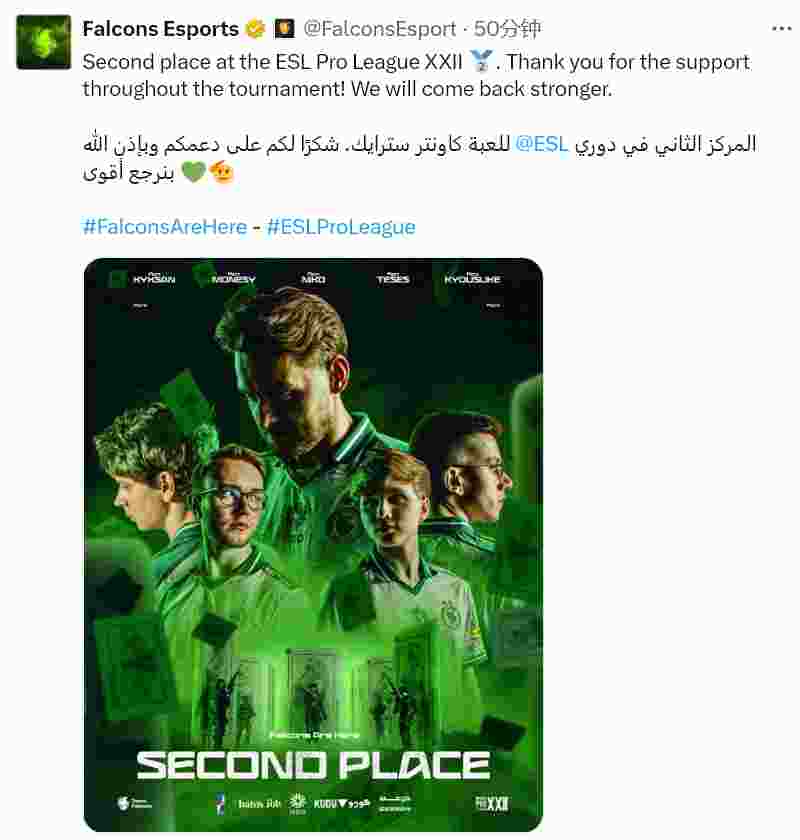 Falcons:在EPL S22中获得第二名,感谢粉丝们在整个赛事期间的支持,我们将会以更强大的姿态回归。