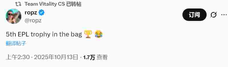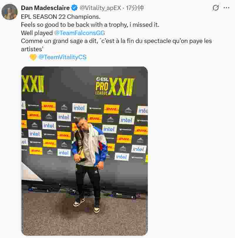 ZywOo:EPL冠军!再次夺得冠军的感觉真好,