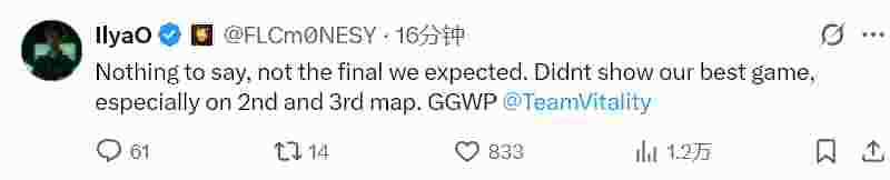 m0NESY:没有什么好说的,这不是我们期待的总决赛,我们没有展示出最好的表现,特别是图二和图三。GGWP Vitality。