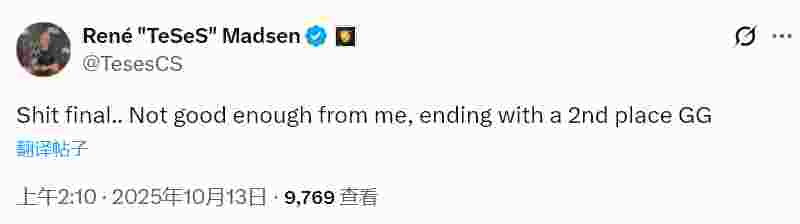 TeSeS:糟糕的总决赛,我发挥的远远不够好,以第二名结束这项赛事,GG。