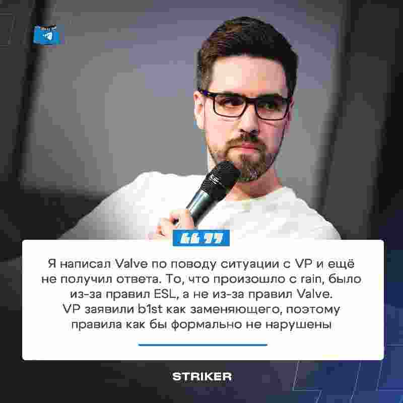 而赛事主办方ESL曾强制要求队伍必须携带三名原阵容选手参赛,禁止随意更换阵容,因此才出现了rain被迫替补的情况。