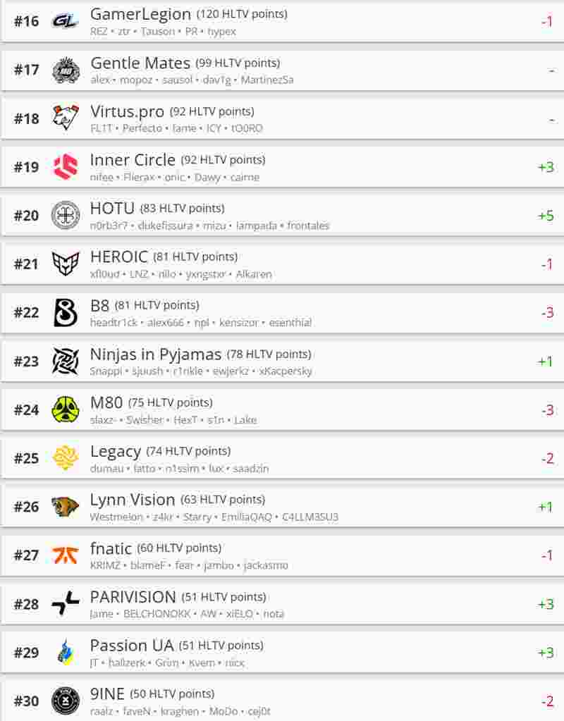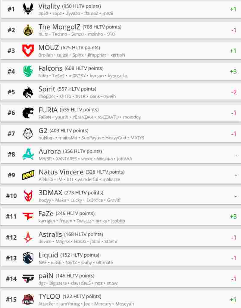 一起看看最新一期HLTV世界排名吧。