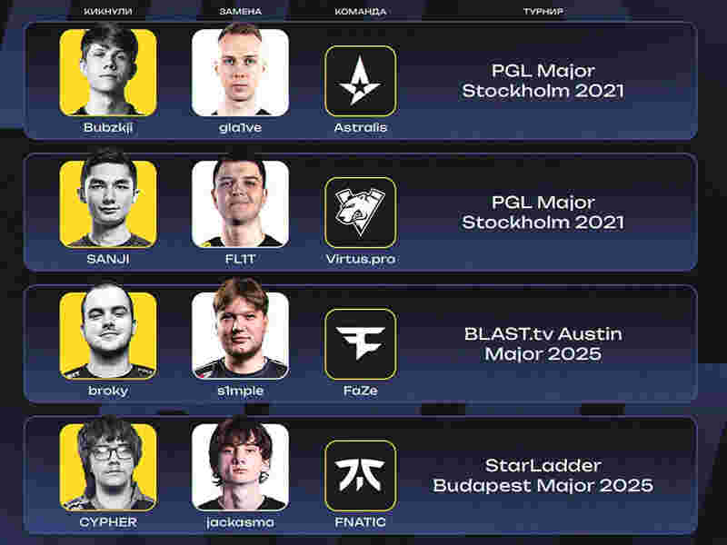 broky(FaZe, 2025): 在奥斯汀Major前,FaZe Clan为了短暂地租借s1mple,将broky临时移出阵容,让他也体验了一把“被背刺”的感觉。