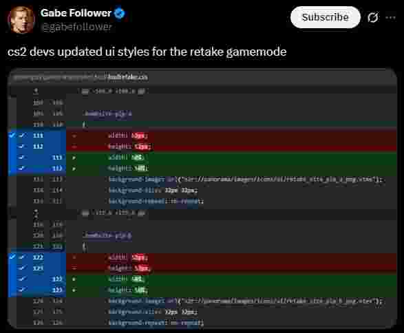 此外,Gabe Follower还在代码中发现,CS2开发者更新了“回防”游戏模式的用户界面样式。