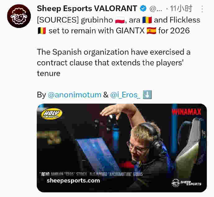 GIANTX启用合同条款,延长了上述选手的合约期限。