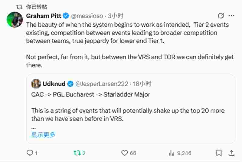 对于Udknud的分享,前Complexity战队经理messioso也表示:“当体系开始按预期运转时,其魅力便得以显现,二线赛事发挥应有作用,赛事之间的竞争带动队伍展开更广泛的对抗,而处于下游的一线队伍则面临着真正的生存危机。