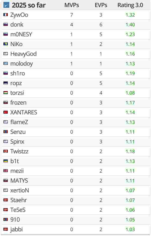 ZywOo本次赛事表现出色,而donk则表现中等,这使得年度最佳选手的竞争格局依然充满悬念,局势微妙。