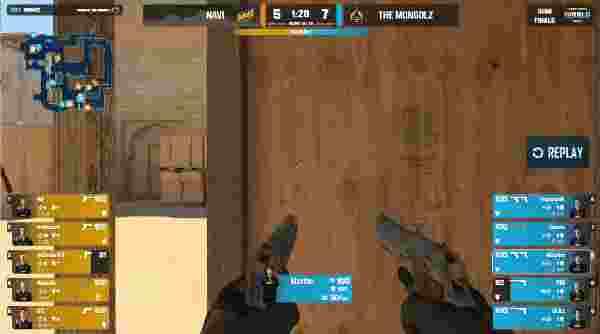 换边再战,手枪局土匪选择抱团开火车打黑屋,makazze先拿首杀后被补,w0nderful包点完成三杀帮助队伍成功下包,CT仅剩mzinho一人回防拿到双杀,好在w0nderful最后没有犯罪,NAVI拿下手枪局。次回合的蒙古选择eco也是没能找到翻盘机会再交出一人。下一回合长枪局,makazze抢中失败被火烧死,iM打掉bLitz,土匪选择转B坡进攻,但Techno和910两人包点游龙顶住攻势帮助队伍扳回一分。土匪选择甜甜圈夹A,一波混战后双方站至3V3土匪成功下包,包点的NAVI三人均完成击杀拿下比分。随后经济劣势的蒙古再交出一分来到第十八回合关键局,iM抢中被接,bLitz拿到双杀,CT形成人数优势,910大狙也没有闲着A点双杀帮助队伍扳回一分。接下来的回合蒙古连续追分,但第二十二回合的NAVI找到机会赢下回合率先拿到赛点,最后一回合的土匪攻势猛烈拿到人数优势,土匪选择甜甜圈转A下包,两名CT回防失败,NAVI成功拿下比赛晋级决赛。