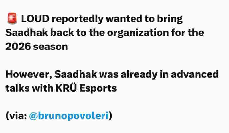 然而,消息人士透露,Saadhak目前已与KRÜ Esports进入深入谈判阶段,双方的沟通进展顺利,回归LOUD的可能性几乎已被排除。