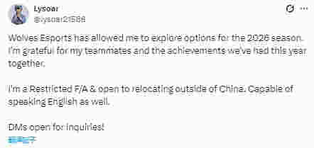 Wolves Esports已允许其探索2026赛季机会: