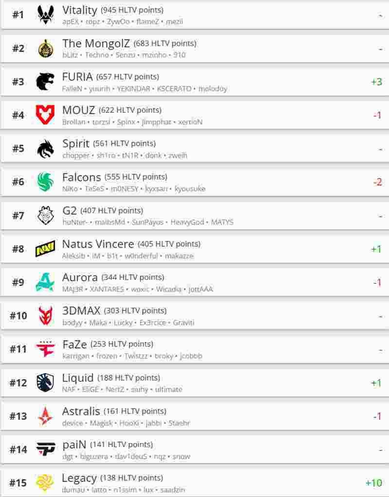 一起看看最新一期HLTV世界排名吧。
