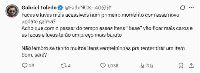 FalleN:兄弟们,这次更新后,刀具和手套会不会在初期变得更容易入手啊?我觉得随着时间推移,这些“基础”物品会变得更贵,而刀具和手套的价格会更便宜。