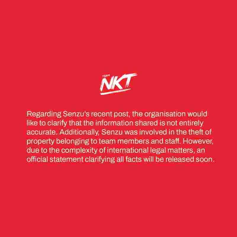 对此NKT俱乐部发布声明,表示Senzu所言非实。