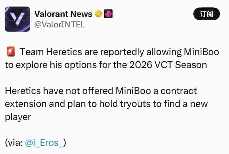 Heretics 尚未与 MiniBoo 续约,并计划举行试训以寻找新队员。